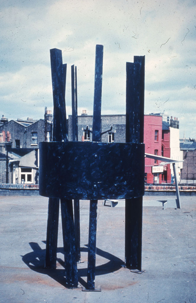 Following the exhibition Foster visited the US for the first time. He met critic Clement Greenberg and saw sculpture by David Smith, Michael Steiner and Jules Olitski. The visit had a profound effect on Foster and he would regularly return. An openness to American art would, especially from the eighties onward, differentiate Foster’s (and Hide’s) sculpture from that of their Stockwell contemporaries. In the mid-seventies the impact of both Steiner and Olitski can perhaps be seen in Foster’s Drum series, though an interaction with the work of Hide and Anthony Smart, with whom he shared a studio space, was likely as important. The first public expression of the group Hide had gathered at Stockwell was the 1974 exhibition, in which he showed alongside Foster, Gili and Smart.