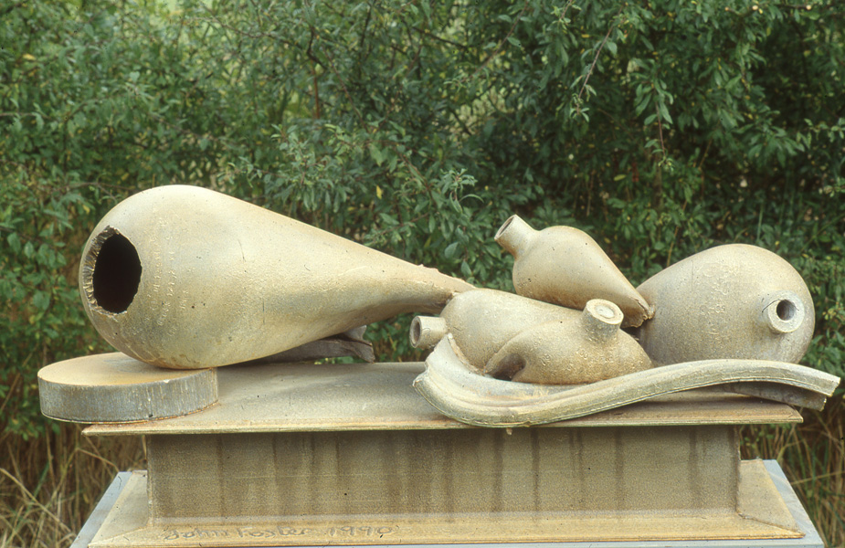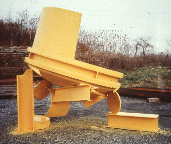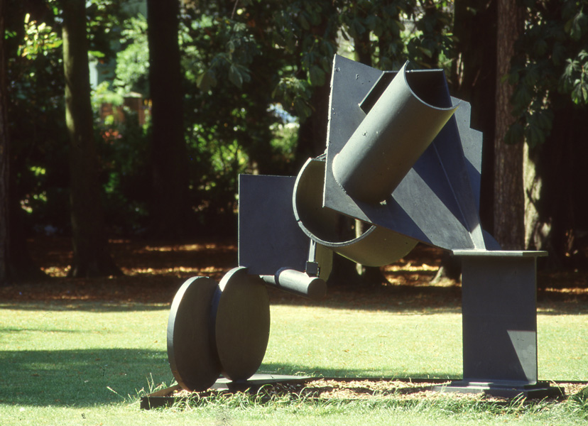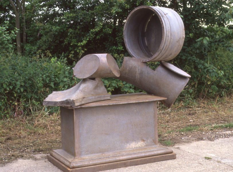 In 1993 Foster and Jon Isherwood proposed a sculpture workshop to the collectors Muriel and Philip Berman to take place in their home city of Allentown, Pennsylvania. The Bermans, who had a number of Foster’s sculptures from the eighties in their collection, agreed to sponsor the event ‘stipulating only that the work had to be large’. As Karen Wilkin put it in a catalogue which accompanied an exhibition of the sculpture produced: ‘What was most extraordinary, and ultimately determined the ambition and dynamism of the project, was Berman’s arranging for the sculptors to work at two sites: a stone yard, run by the master stone-worker participant, Kainz, and a factory where immense steel machinery was constructed, both fully equipped with state-of-the-art tools, cranes, and all the rest of it, manned by skilled factory assistants […] the possibilities were exhilarating, but unlike typical workshop sessions, which encouraged experimentation rather than result, the terms of the Bermans’ involvement created immense pressure to achieve finished, resolved work’. Foster produced several large-scale sculptures, making use of very large cylindrical steel tanks. Brightly painted in saturated yellow, red and blue, they sit strangely within the rest of his work, and more securely within a mainstream of public outdoor sculpture stemming from Caro and Smith. Knight’s Move made when Foster returned to Britain during 1994-95 was his last large-scale sculpture.