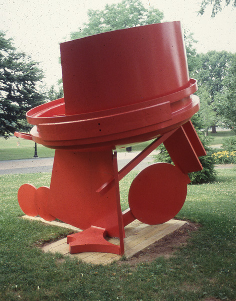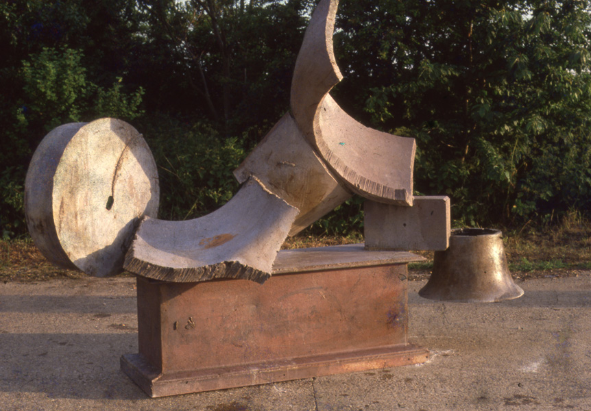 In 1993 Foster and Jon Isherwood proposed a sculpture workshop to the collectors Muriel and Philip Berman to take place in their home city of Allentown, Pennsylvania. The Bermans, who had a number of Foster’s sculptures from the eighties in their collection, agreed to sponsor the event ‘stipulating only that the work had to be large’. As Karen Wilkin put it in a catalogue which accompanied an exhibition of the sculpture produced: ‘What was most extraordinary, and ultimately determined the ambition and dynamism of the project, was Berman’s arranging for the sculptors to work at two sites: a stone yard, run by the master stone-worker participant, Kainz, and a factory where immense steel machinery was constructed, both fully equipped with state-of-the-art tools, cranes, and all the rest of it, manned by skilled factory assistants […] the possibilities were exhilarating, but unlike typical workshop sessions, which encouraged experimentation rather than result, the terms of the Bermans’ involvement created immense pressure to achieve finished, resolved work’. Foster produced several large-scale sculptures, making use of very large cylindrical steel tanks. Brightly painted in saturated yellow, red and blue, they sit strangely within the rest of his work, and more securely within a mainstream of public outdoor sculpture stemming from Caro and Smith. Knight’s Move made when Foster returned to Britain during 1994-95 was his last large-scale sculpture.